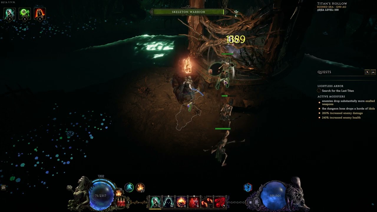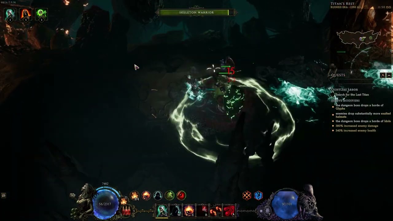 Skeleton Rogue seems like it’s trying to teleport but can’t so it bugs out and stops attacking, making it useless in this dungeon, it also happens against the Soul Cages from the Abomination boss fight in Fall of the Outcasts timeline.