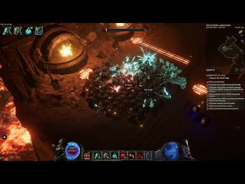 I’ve been getting a bit bored of the Sentinel at the moment so I thought I’d try something with Pyromancers (because pretty, it’s just a pity I missed out on the “fire projectiles are replaced with pink effects”) & Bone Curse instead of Summon Skellies for the freeze chance and cull.
