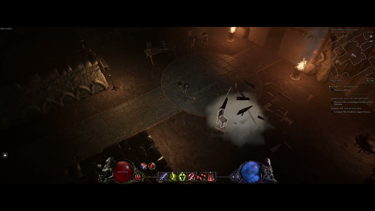 is kind of all over the place. Especially noticeable in the first room of The Great College, but this is not the only area where this occurs. It occurs with both the fire and lightning versions of the explosion