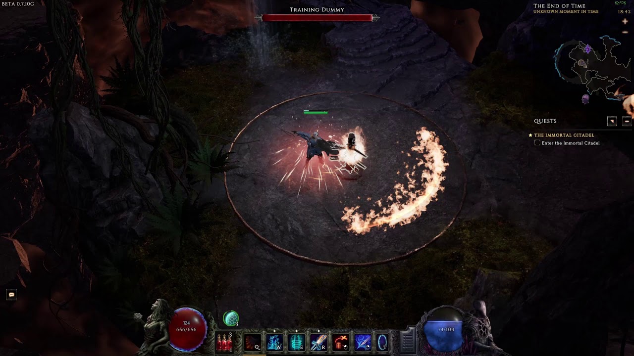 This is probably another issue with the dummy not counting as an ‘enemy’, kinda like how Zap from Static won’t target barrels/debris/dummy. Have you checked to see if it still works on actual enemies?