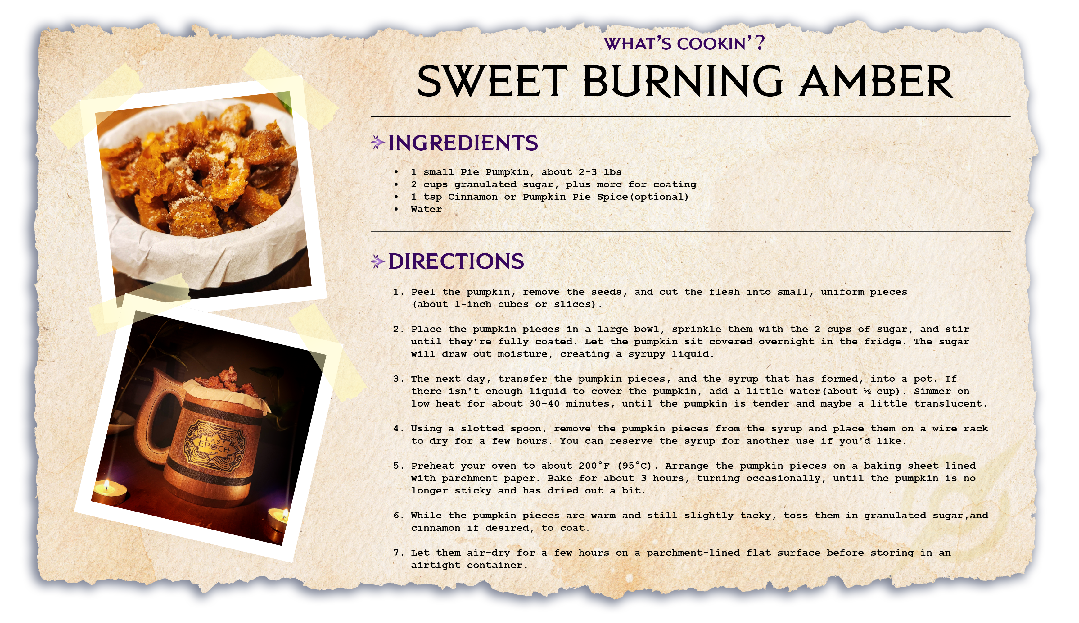 This Fall season, we are making Sweet Burning Amber. A delicious candied Pumpkin recipe that is sure to be a hit around the house, or at your next party.