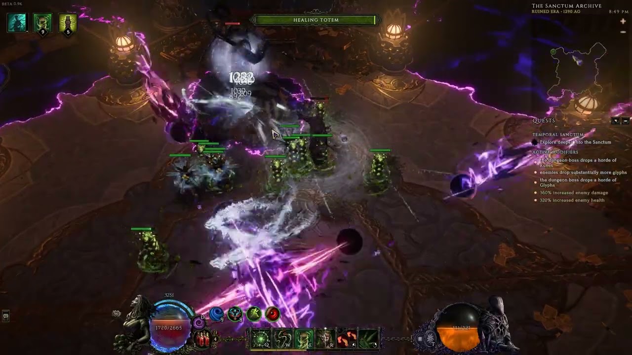 Please do something about minions and Boss DoTs, It is unfair that enemy DoTs tick faster than healing (from totems, aura of decay, spriggan aura) or regen. Minion AI also needs a ton of work, 1:15 in the video my Spriggan decides to just take a dip in the corner arena DoTs (I suspect this is related to the Volatile Reversal bug)
