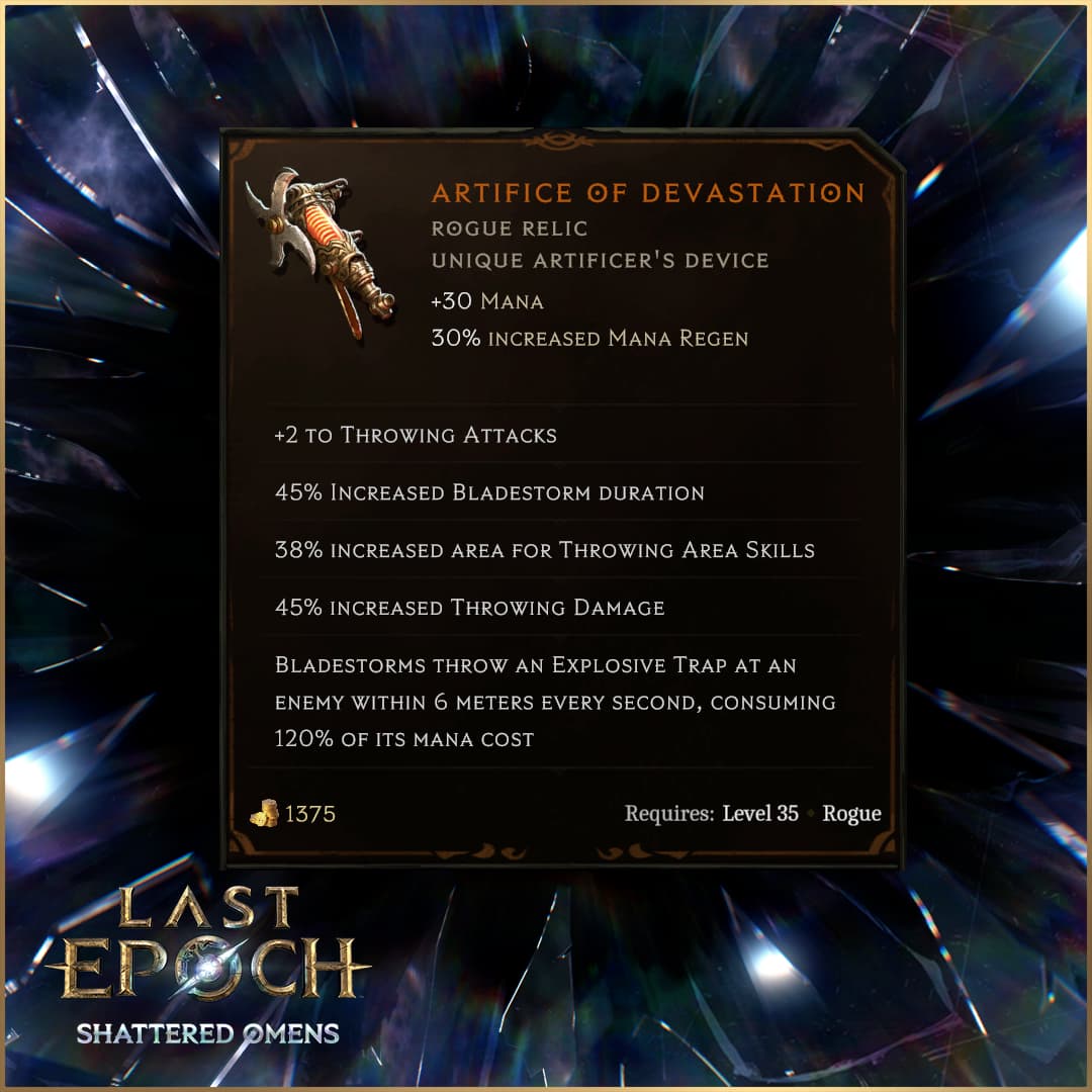 Artifice of Devastation will help Rogue players increase their throwing damage, area of effect, and additionally empower Bladestorms to throw explosive traps.