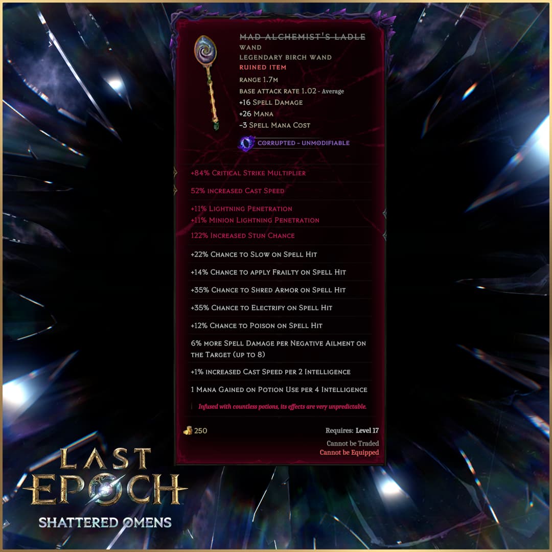 While corrupted items cannot be modified, they can still be shattered if they would normally allow it. However, the new affixes exclusive to corruption cannot be obtained as affix shards. You can also sell corrupted items to vendors, though they likely won’t offer much for them. Maybe it’s better to keep them in your stash as a reminder of what could have been?