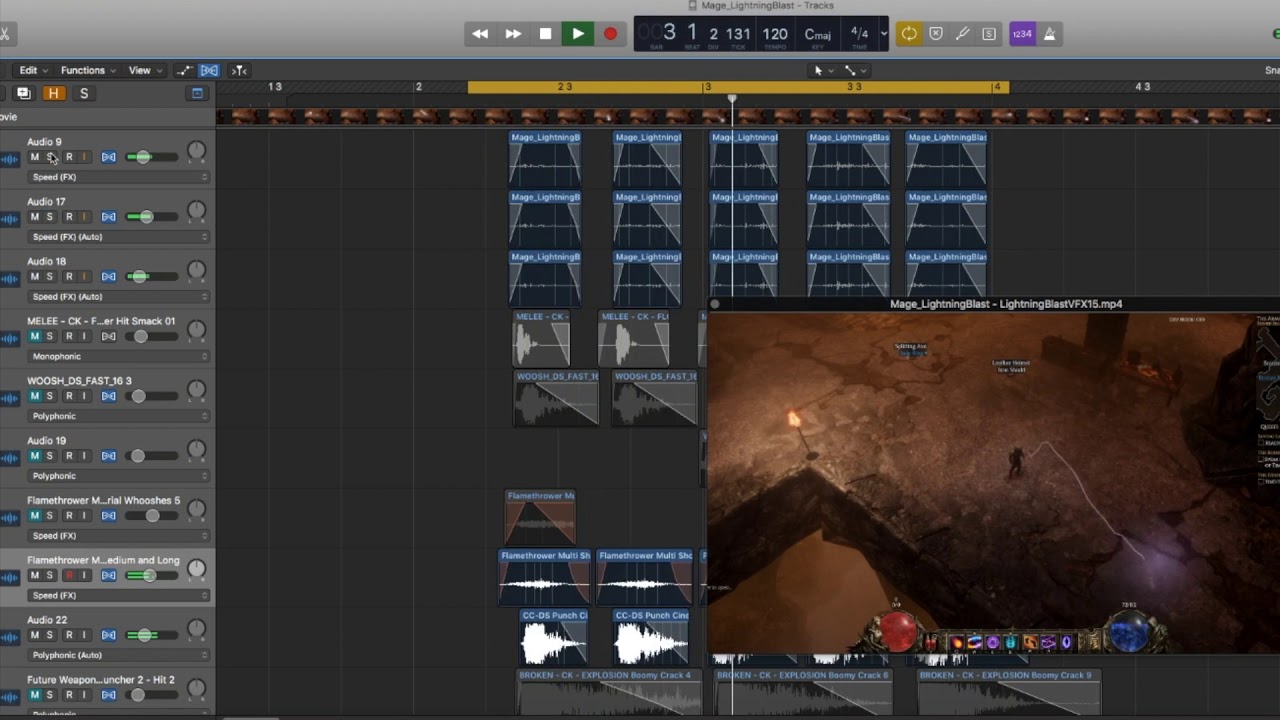 Today we’d like to show you a video he prepared of his work on a new sound effect for the skill Lightning Blast. It uses the sound of a stun gun, granular audio effects, and equalization to create the sound of lightning flying through the air to strike your foes!